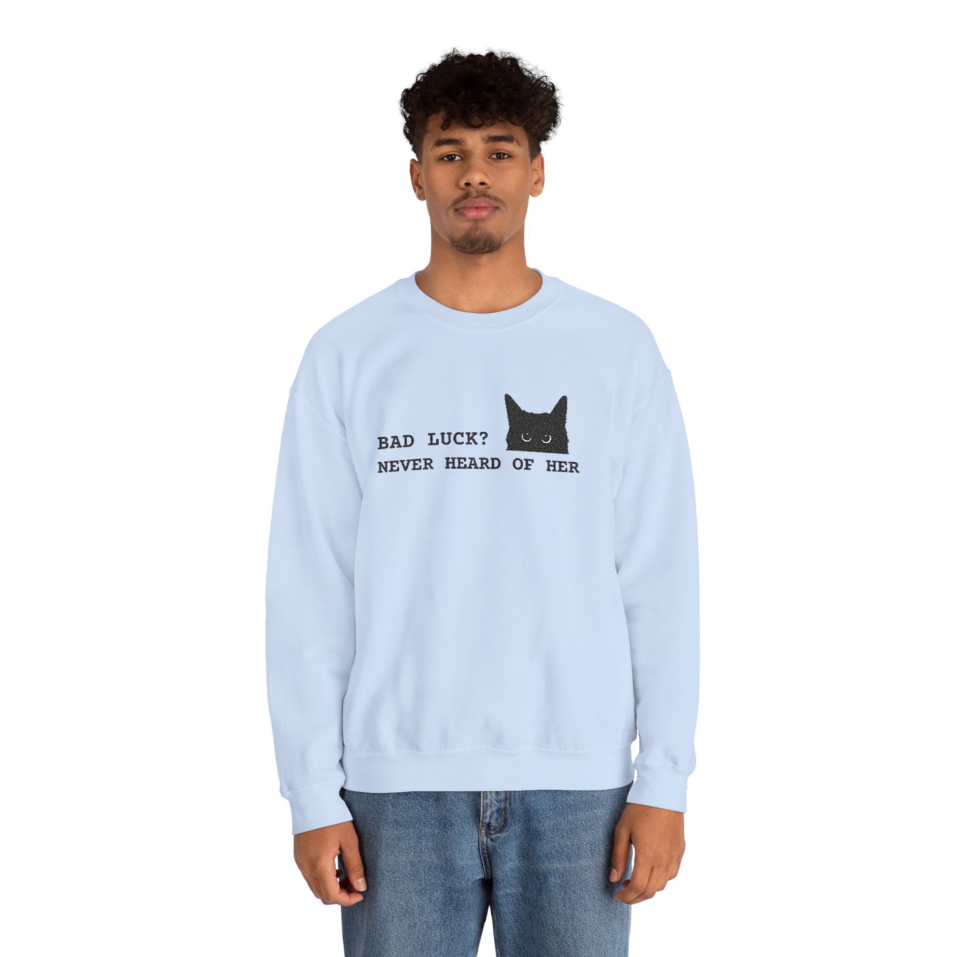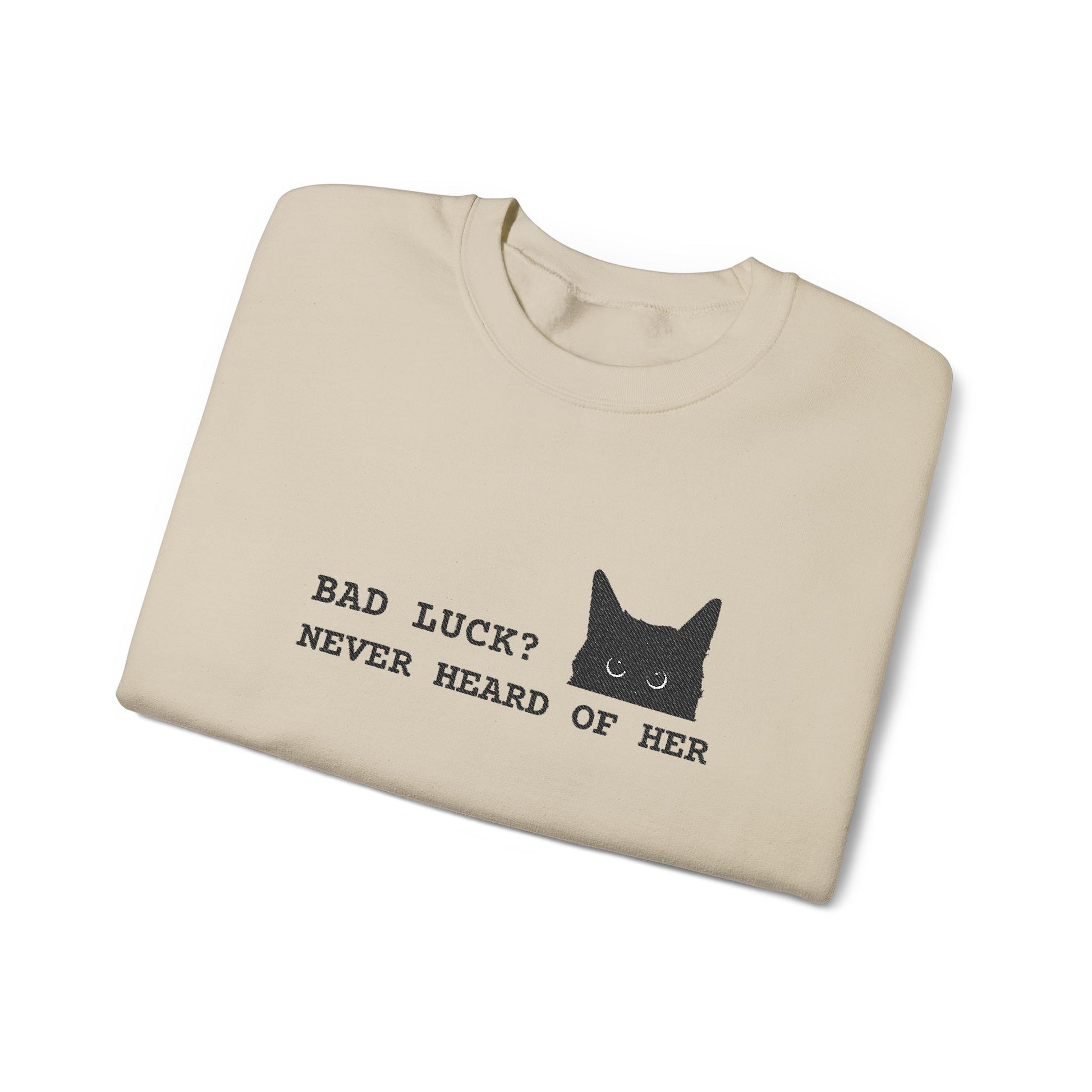 Bad Luck? Never Heard of Her Sweatshirt Embroidery