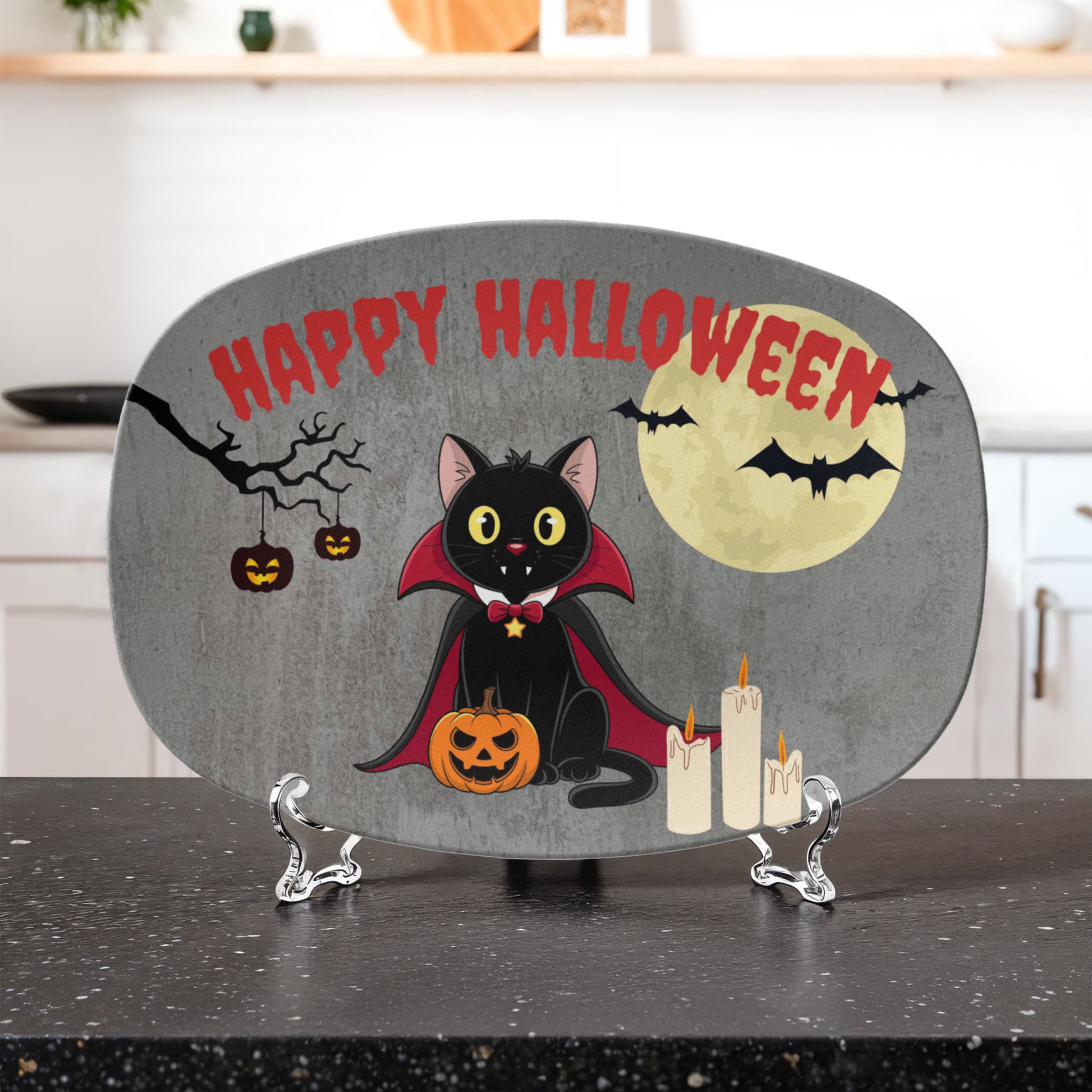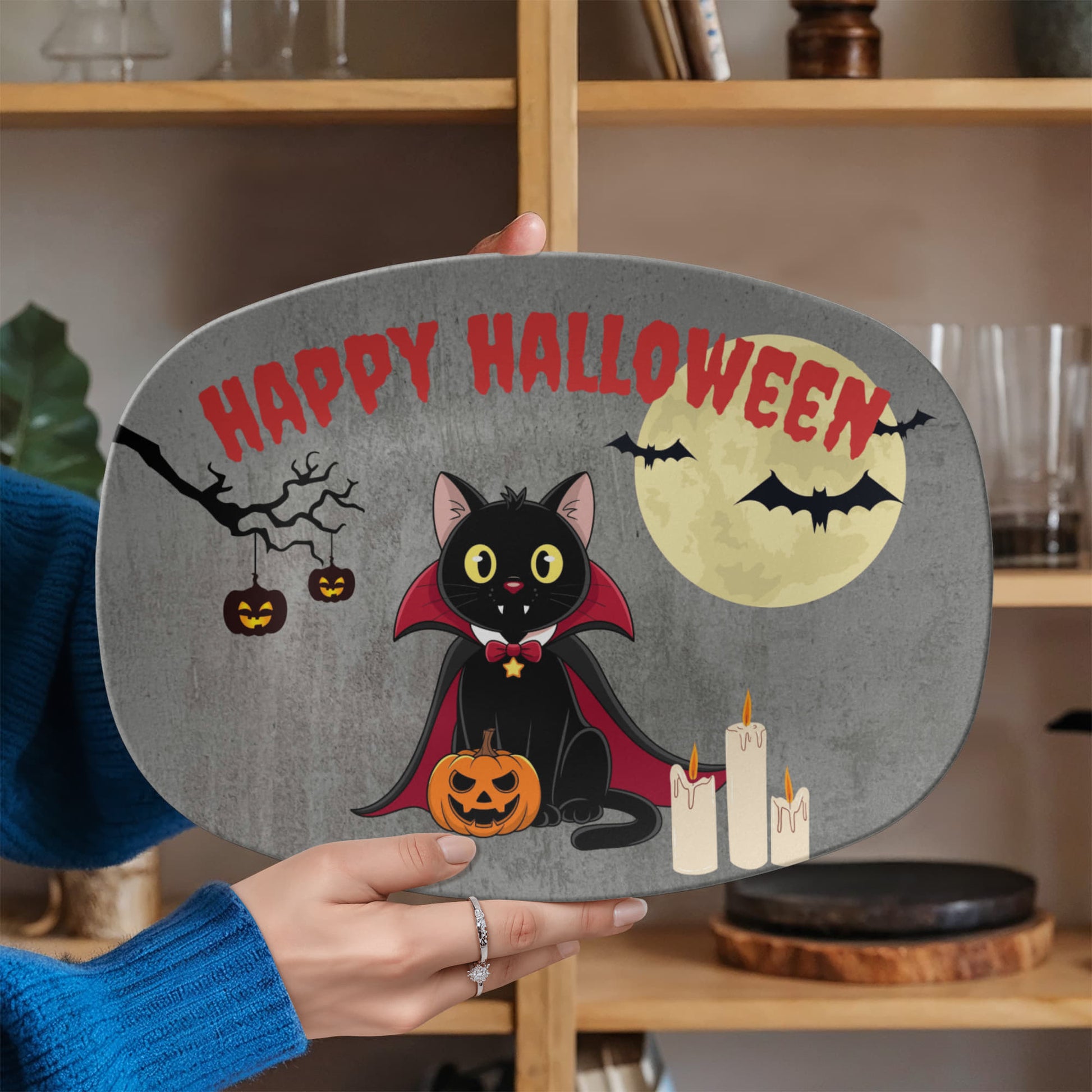 Serve up spooky charm with this adorable Halloween platter featuring a vampire cat under the full moon. Perfect for candy, snacks, or festive table décor.